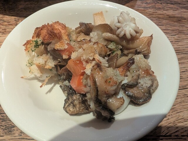 サラダ、ライス、スープ、食後のコーヒーのセットが無い。ステーキにサラダとライスは付いて来るけど、スープと食後のコーヒーは別発注。今日はカキフライも、デザートの自家製黒蜜アイスも無い。なので今回はミモザサラダとカキと紋甲イカ、木の子のオーブン焼きとコーンスープとテンダーロインステーキ200gとキャラメルのアイスを注文。ステーキはさすがのお値段、さすがの柔らかさ、さすがの美味しさ。自家製黒蜜アイスの復活をお願いしてまた来ます。ごちそうさまでした。