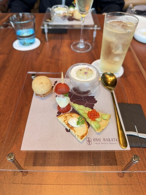 キャビアやフォアグラ、九州産黒毛和牛や有頭海老とアサリ・ムール貝のパエリア、九州の食材を使ったお料理(^^)