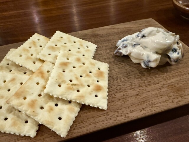 コース最初のタタキがでてくるまで時間がかかるとのことで、追加で黒豆のマスカルポーネクラッカー付きを注文。