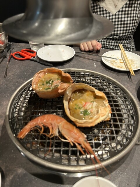 タラバと鮑を先ず焼く!鮑小さいけど肝もあり 美味しい3個ペロリで元取りました!