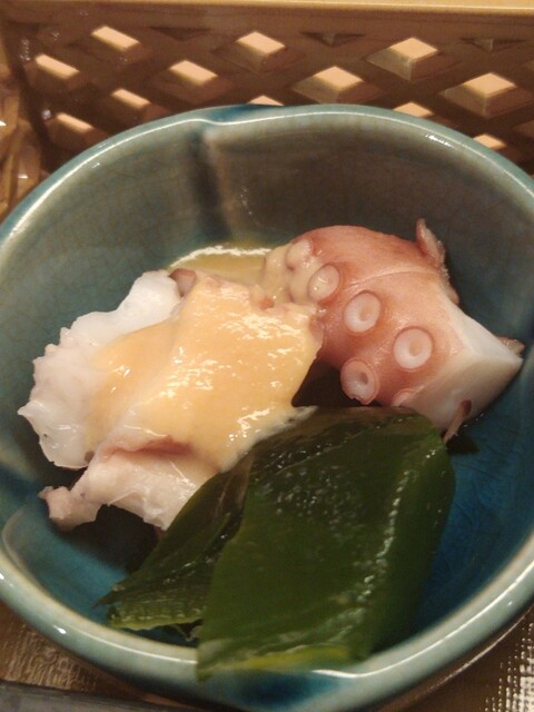 やなぎダコと若布の炊き合わせ、酢味噌がけ〜