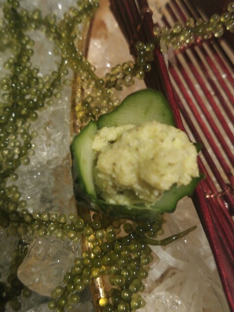生ワサビの摺りおろしののったお作りキュウリ!うっかりその食べてしまいそうになり、あたふた…辛い…(笑)www