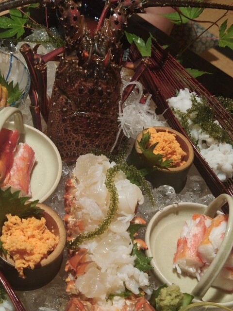 伊勢海老さまの刺身〜軽く湯がいて、甘みを引き出していますねぇ~❤甘い、アマイ〜ぷりぷり、プリップリッ〜❤さっきまで動いていたから、ごめん。その代わり、めちゃ美味しく頂きましたぁ〜❤