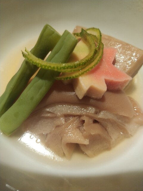 山椒が映えますね❗この山椒の葉っぱは、お店のです。私の大好きな炊き合わせ〜❤とっても繊細なお味で美味❗日本人に生まれて良かったなぁ〜❗ლ(´ڡ`ლ)