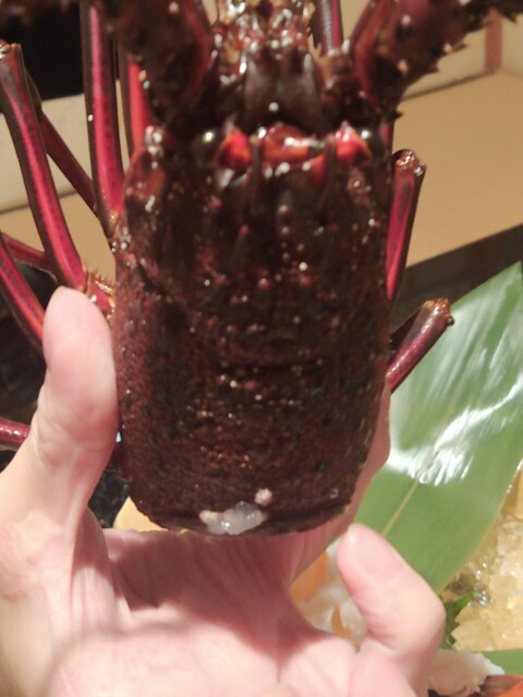 伊勢海老の炙り!大きが桁違いで、あしがズワイガニの足みたいにチュルリ〜ンと、中の身が取れる極太極上〜!❤ლ(´ڡ`ლ)