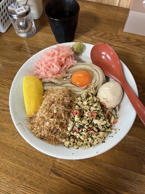 トッピングにはレモン、鰹節、かき揚げ、ラー油などそれぞれ好みで付け足せます。1つ目は無料、2つ目以降は+50円です。