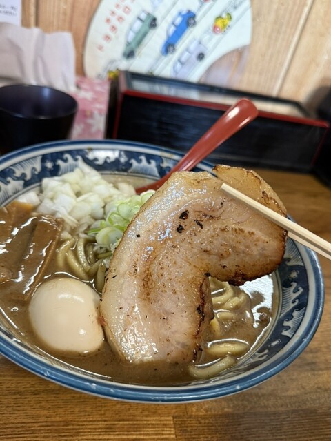 なんといってもコシのある極太麺と濃厚な豚魚介スープの組み合わせ。うどん製麺機で製麺された極太自家製麺は、もちもちとした食感と小麦の風味を存分に楽しめます。そして、その麺に絡みつくドロッとした濃厚なスープは、魚介の旨味と豚骨の濃厚さが絶妙なバランスで調和しています。