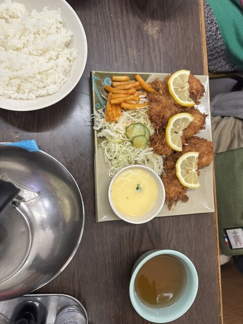 くれたけはなくなってたけれど25年以上前に行ったことのあるお店まだ、当時のまま頑張っておられました。 二色チキンカツはチーズと大根おろし。とても美味しかった。 一緒に行った両親が食べてた和風ハンバーグと鮮魚フライもとっても美味しそう。写真のご飯は少な目です。 普通盛りはとっても大きくて学生さんの食欲も充分に満たせそう。もうあんなには食べれないけれどまた来たい。 近くのクリケットのゼリーもとてもオススメです。