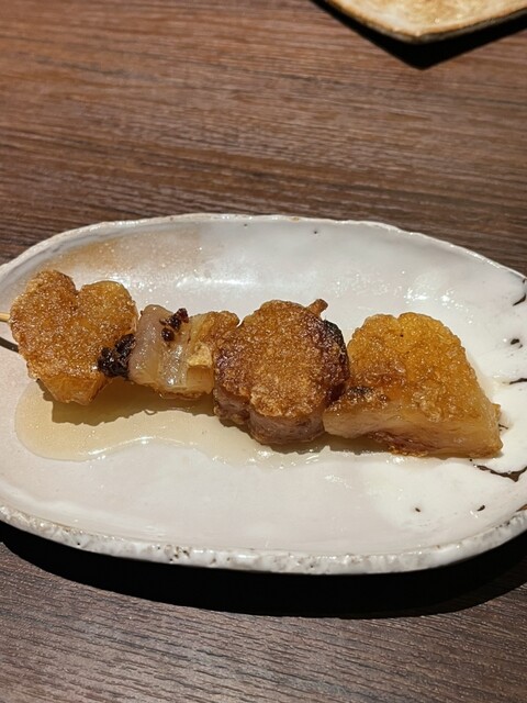 海鮮オーブン焼き これは美味い。嬉しい。イカ下足、えび、ナスそしてイカ塩辛?が焼いてあります。シンプルイズベスト‼️塩味は強いけど酒の進む一品。