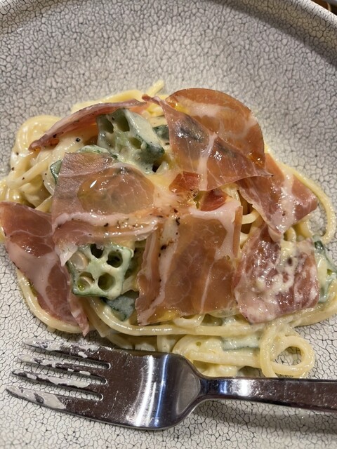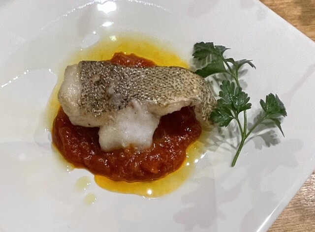 本日は二軒目と言うこともあり軽くです。お通しとサワラのカルパッチョ、スズキ?のアクアパッツァ風頂きました。肉ではなくあっさりとした物が食べたいとカルパッチョ。年齢なのか二軒目だからなのか、あっさりが多くなった感じ。ケイパーとオリーブオイルでさっぱりと。ケイパーコラトゥーラと言うらしい。難しい