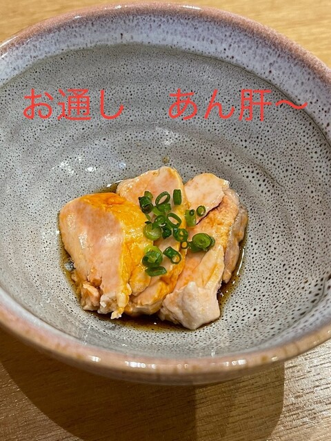 今宵はお通しから、やった〜❗️と言ってしまったお通しでした。お通し①のあん肝ポン酢今年初あん肝冷た過ぎずにほんのり温かく最高に美味しかった〜です。