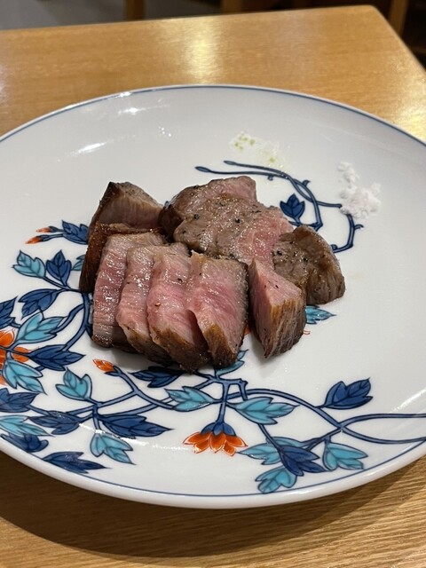 黒毛和牛ステーキ。やっぱり焼いてもらう肉最高です。しかも喜なさるマスター焼き加減最高です。