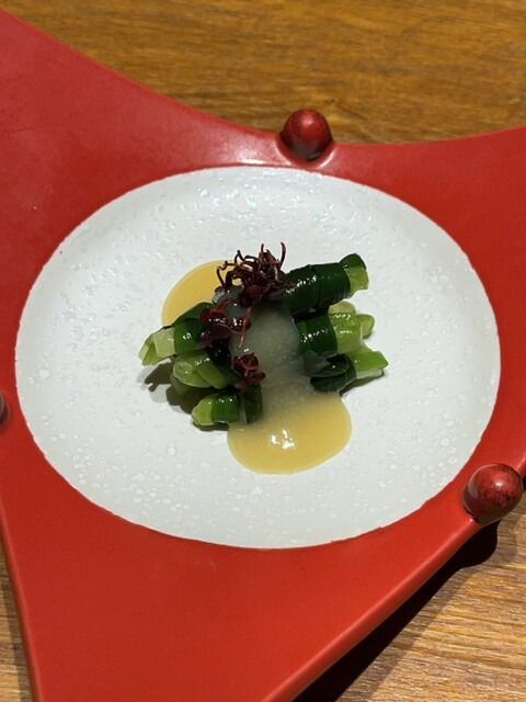 お通し 生ハムカプレーゼ オシャです。予約時要望欄に鳥が苦手なので‥と書き込んでました。実は前回も当日お通しが鳥だったので伝え得ると快く別物に交換して頂いたので事前にダメ元で書き込んだんですが感謝です。