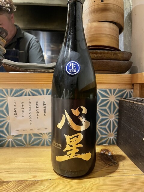 今宵は1番隅っこのカウンターで生ビールからのスタートです。カウンターは調理場の中が少しだけ見えてワクワクします。