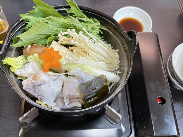 河豚ミニコース1人前 てっさ、煮凝り、白子豆腐、皮、唐揚げ、鍋(〆の雑炊)迄入ってます。(流石にトラフグではないかも‥)2人なら充分ですね。