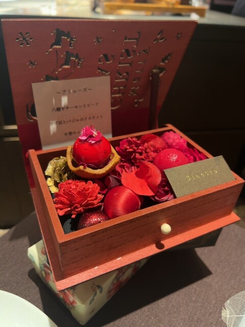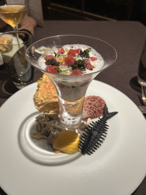 何を食べても美味しかったですが、カニやマグロをカクテルグラス?に閉じ込めたお料理は特に印象に残っています。また伺います。