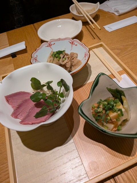 まずはおばんざいで乾杯して、湯葉刺し、ブリの刺身、肩ロースといただきましたがどれも高級な味でとたも美味しかったです。
