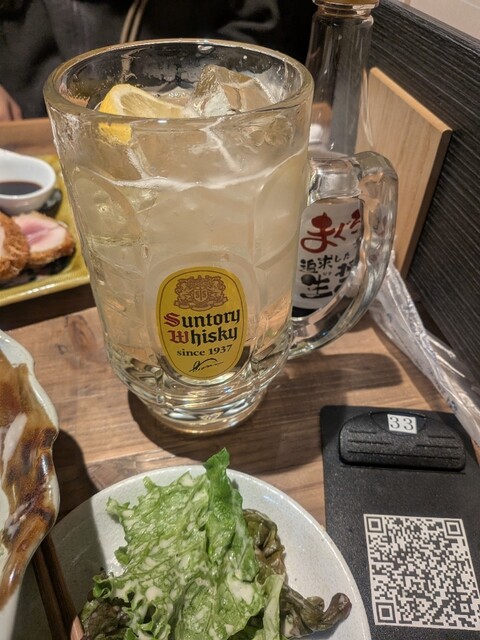 これだけ食べて、ビール、ウーロンハイ、メガハイボール、芋のロックと4杯飲んで2人で7000円。