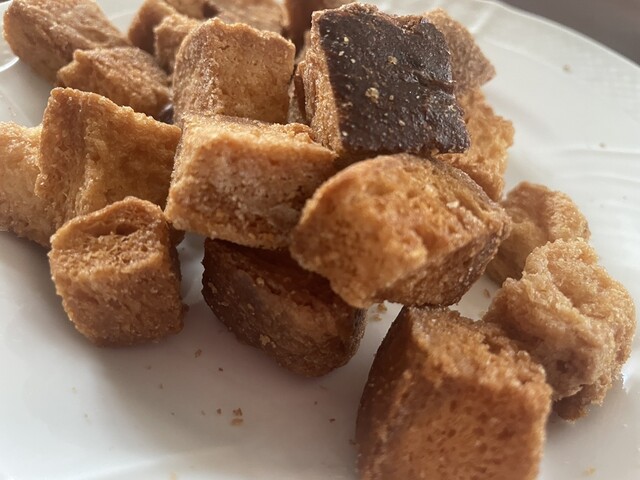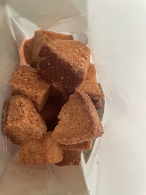 創業当時からお気に入りシュガーラスクが本日ありました。パン屋さんですが食パンの端をブツ切りにして仕上げた逸品になります。スライスタイプに比べて、歯応えがよく食べ応えもあり、おき入りの紅茶やコーヒーと合わせれば、湘南の正しいひとときを!