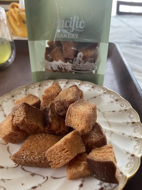もはや名物になりました七里ヶ浜のパン屋さんでオシャンティなパシフィックはレストランに最近では西武から買取ゴルフ練習場まで進出、絶好調のパシフィックのラスクブツで食べ易いし、歯ごたえが、抜群!いつまであるかわからないがアフターサーフィンにはおすすめ!