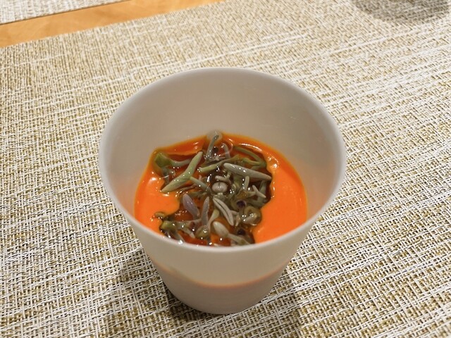 この日の関金わさびを使ったとり貝とウニの一品は素材そのものを生かした妙が素晴らしく、メインの花山椒と薩摩牛ハラミローストと熟成トリュフグラタンはソースとグラタンがまたお肉を生かす逸品で記憶に残ってます
