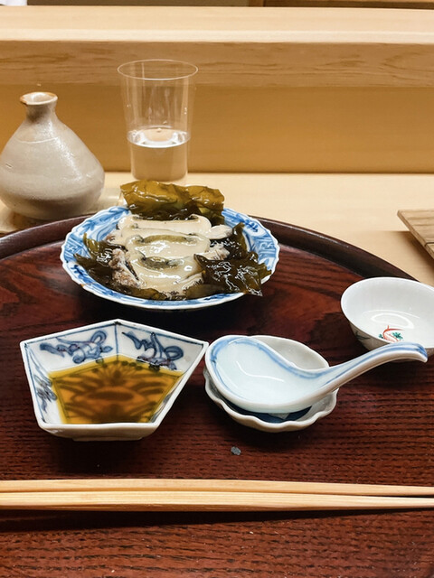 白子は一口大、焼かれた白子の膜が香ばしく美味しいですね、雲丹とあわさり濃厚な旨みですが柚子の甘さと香りでバランスよく食べられます