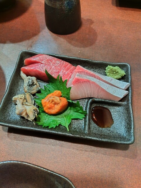 スターター的に供される刺身とあん肝がまずは美味い!これだけで日本酒が進みます。