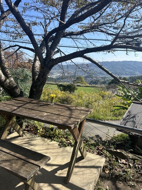 席はほぼ外なので雨風日差し全ての影響を受けます。自然いっぱいでピンクニックしているみたい。