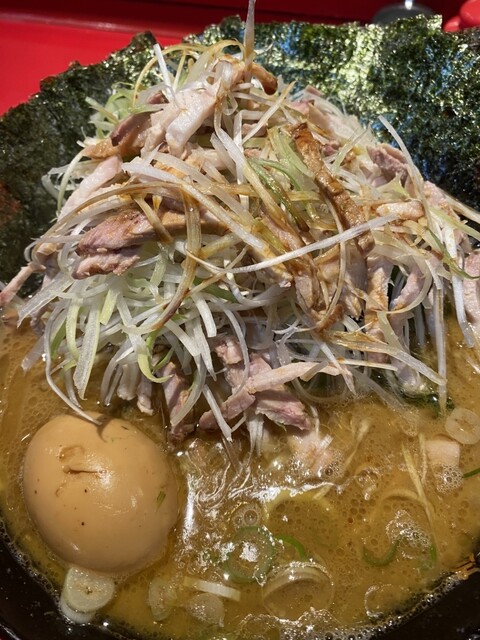 もちろん“家系フル装備”:麺かため・味濃いめ・油多め。