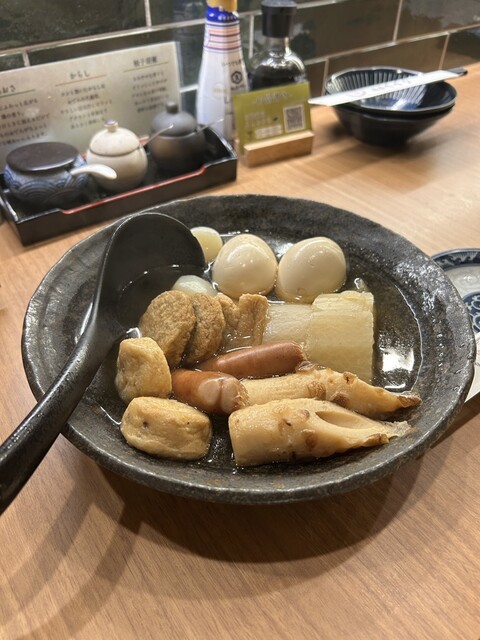 特筆すべきは名物の京出汁おでん。透明感のある出汁は一口すすると優しい旨みが体に染み渡り、しっかり煮込まれた大根や卵は噛まずともほどける柔らかさ。疲れがスッと和らぐような滋味深さに、思わずため息が漏れます。しかも驚いたのは、お通しとして提供されるおでんがなんと食べ放題という点。上品な京出汁をおかわりできる贅沢さに、気づけば大根を何個も平らげていました。