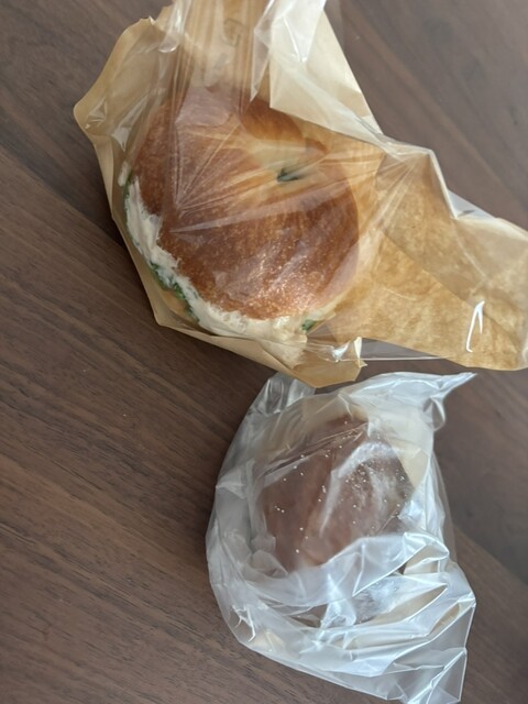 ツナメルトベーグル420円とマラサダ?ハワイのドーナツにあんと生クリームがはさまってるもの350円を購入しました。