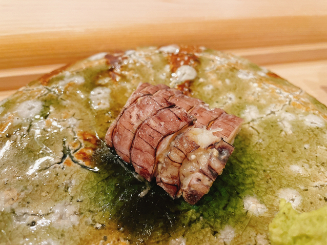 まずはおつまみから。もちろんどれも美味しかったです。特徴的なのは、鮑です。これはよしたけからの流れだと思いますが、鮑を肝たっぷりでたべて残った肝とライスを混ぜる。それはそれは最高に美味しいです。
