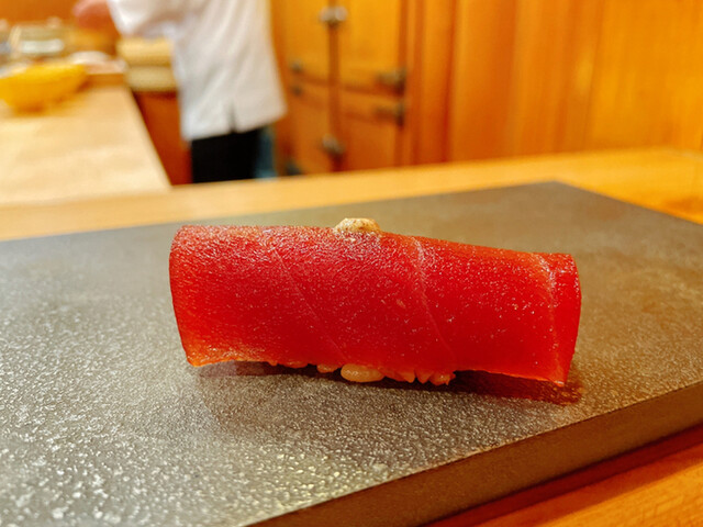 にぎりはマグロ3種類からスタートです。もちろんシャリは赤酢です。