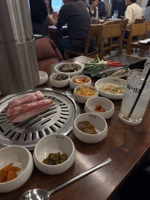 店員さんが寒いのでブランケットどうぞと優しさ満点!外には無料で頂ける麦茶や珈琲があります!とっても嬉しい。サムギョプサルもチゲも美味しかった!セリのサムギョプサルは初めてでしたがリピ確定!
