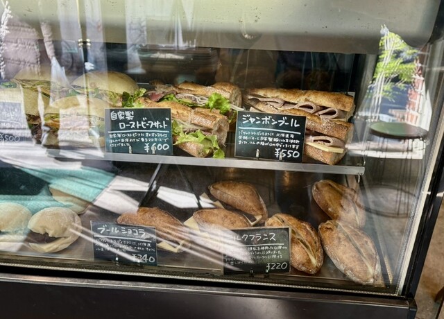 パンの売店で追加で買ったローストビーフサンド