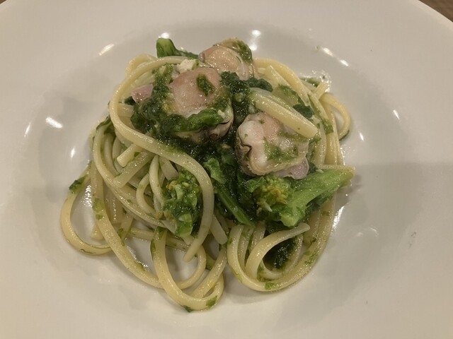 菜の花とはまぐりとアオサのパスタ