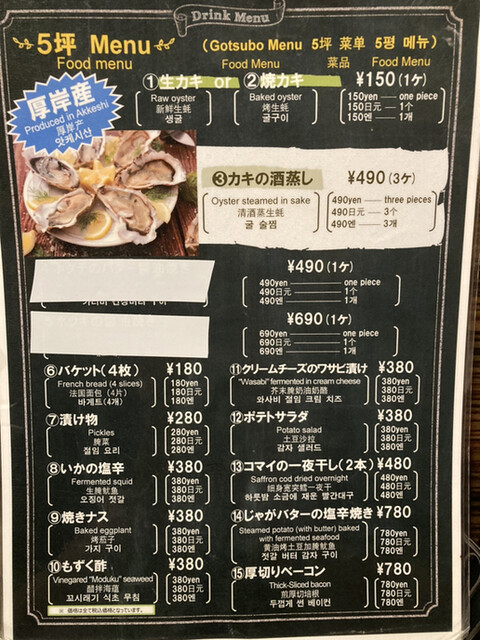 みなさん生牡蠣10個とか頼んでビールや日本酒、ワインと合わせて楽しんでます。