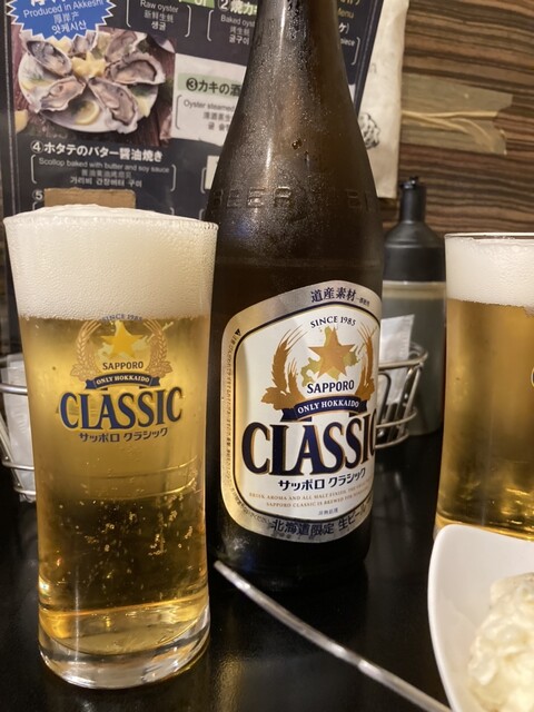 厚岸の牡蠣が一つ150円でいただけるなんて、牡蠣好きな私にとっては楽園、ひたすら生牡蠣、焼き牡蠣、蒸し牡蠣とサッポロクラシック、これだけで完璧