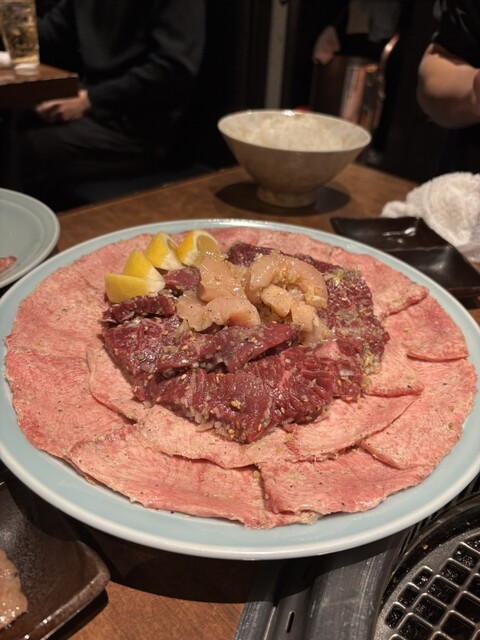 やはりどのお肉もレベルが高く、とにかく美味しい。特にタン塩は外せない一品で、ほどよい弾力と旨みが最高です。上ロースも柔らかくジューシーで、口の中でほどけるような美味しさ。ユッケも質が良くておすすめ。タレ盛り合わせは3種くらいで十分で、頼みすぎると一気にお腹いっぱいになるので注意です。