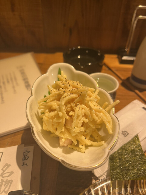 新鮮な白子。こーゆー食べ方珍しくね?日本酒進む。