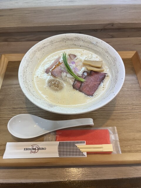 クリーミーなエビ、エスプーマ、海老の甘さ。濃厚やけど、くどくない。これはオマールじゃなくて甘海老を使ってるからかも?(海老丸ラーメンはオマール)