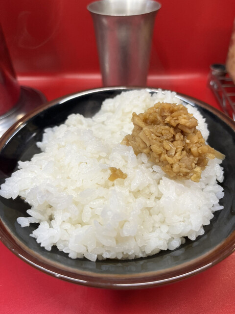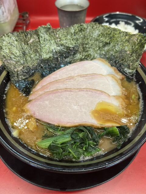 IEKEI TOKYOさんに1ヶ月ぶりにお邪魔しました。オープン時には平日でも15人程度は並んでいます。高カロリーのため出来るだけ来ない様に思っているのですが1ヶ月程度経つとどうしても食べたくなってしまいます。でも必ず味薄めでオーダーします。するとフレッシュな豚骨の旨さと濃さが際立ちます。いつも通りノリとほうれん草をトッピングしたチャーシュー麺と小ライス。小ライスはご飯が食べたいというよりもたっぷりのニンニクを乗せるお皿代わりにしています。ニンニクはラーメンの中に入れたく無いんです。美味しいラーメンの味が変わるのが嫌なんてます。