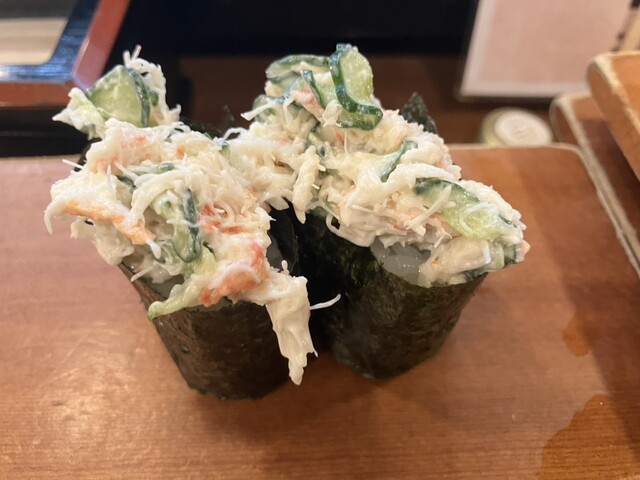 その後も、エビ、ホッキ貝サラダ、カツオ、穴子、シメサバ、カニサラダ、中トロ。