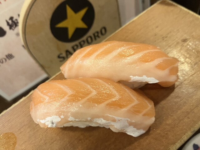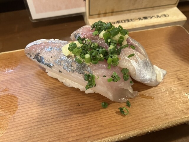 生ビールに始まって、イワシ丸焼き、キュウリの浅漬けをつまみ、握りはアジ、イカ、イワシ、トロタク。