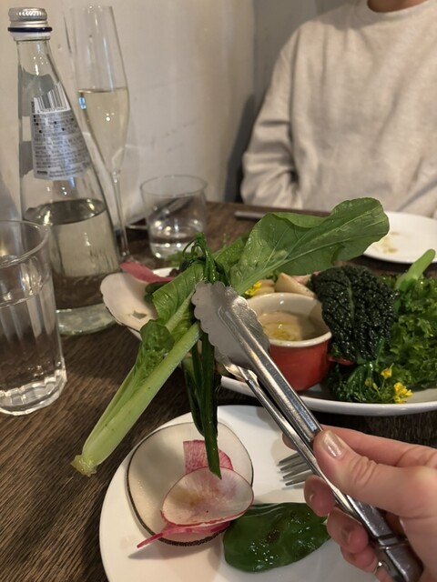 お花畑のようなビジュアル❤️農林水産大臣賞を受賞した農園の野菜は、例えば小松菜が生で食べられるほどえぐみが少なく、感動します!一口目は野菜本来の味を、二口目はアンチョビソースで旨味をプラス✨野菜がもっと好きになること間違いなし!