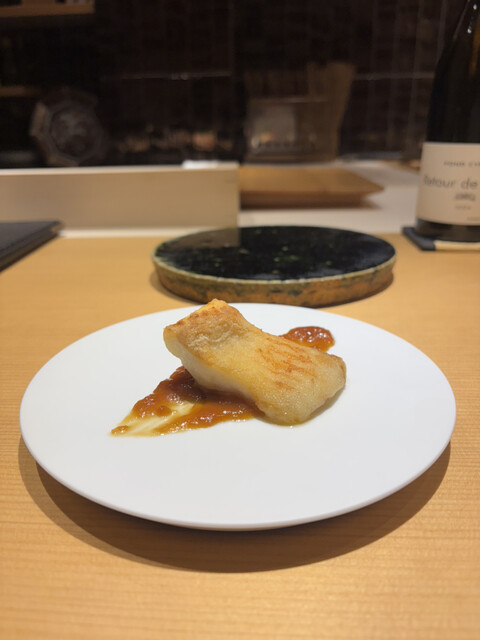 米粉で軽く揚げたコハダは、青魚特有の旨味を残しつつも重さは感じません☺️豆乳タルタルはコクがありながらも後味が軽く、全体のバランスが素晴らしい!