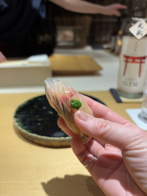 青魚の旨味に、ジェノバ風ソースを合わせた一貫。意外性はありつつも、全体としてよくまとまっています。