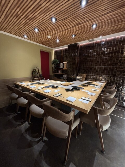 神楽坂のビル4階に位置する、落ち着きと品格を備えた和空間。竹や障子を基調とし、茶室を思わせる侘び寂び雰囲気です。大将を囲むカウンター席は程よい距離感とライブ感があり、所作や仕事を間近に感じながら、食事を楽しめました!