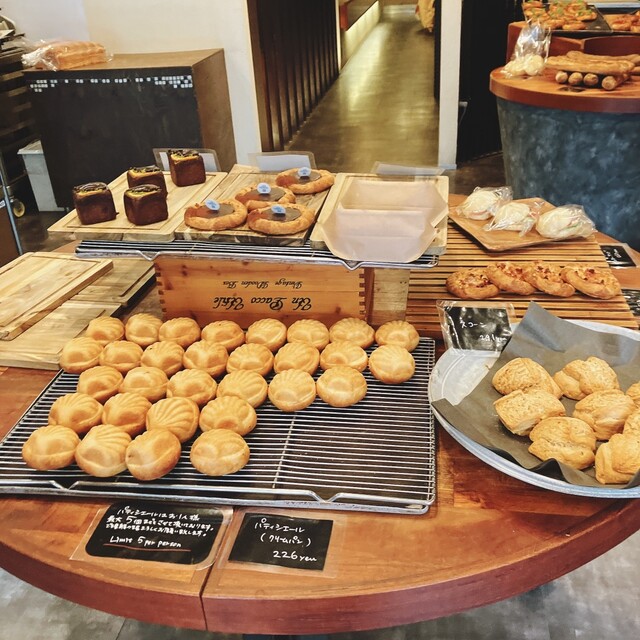 カレーパンが出来立てで、生地もちもち外サクサクで最高だった!牛すじもごろっと大きい。名物っぽい貝の形のクリームパンも中もちもちでこっくりクリームたっぷりでおいしかった!りんごのコンポートもおいしかった。とにかく全部おいしくて感動でした。遠くてもまた行きたい。