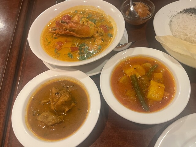 シュリンプカレーとベジタブルカレーはトマトが良く効いていて、程よい酸味で食欲が刺激されます。トマト大好きなのでとっても好きなお味!そしてチキンカレーはかなり感動ものの美味しさ。スパイスの調和が取れていて、辛すぎないのにスパイシーでとっても美味しいです。今まで食べたチキンカレーの中で一番好きかも。総じて辛すぎないので辛いのが多少苦手でも美味しく頂けるのではないかと思いました。また、少人数(この日は2人?)でお店を回されていたのですが、色々提案頂いたりお見送りしていただいたり、食後に味の感想を伺いに来てくれたりと気持ち良い接客も素敵です。